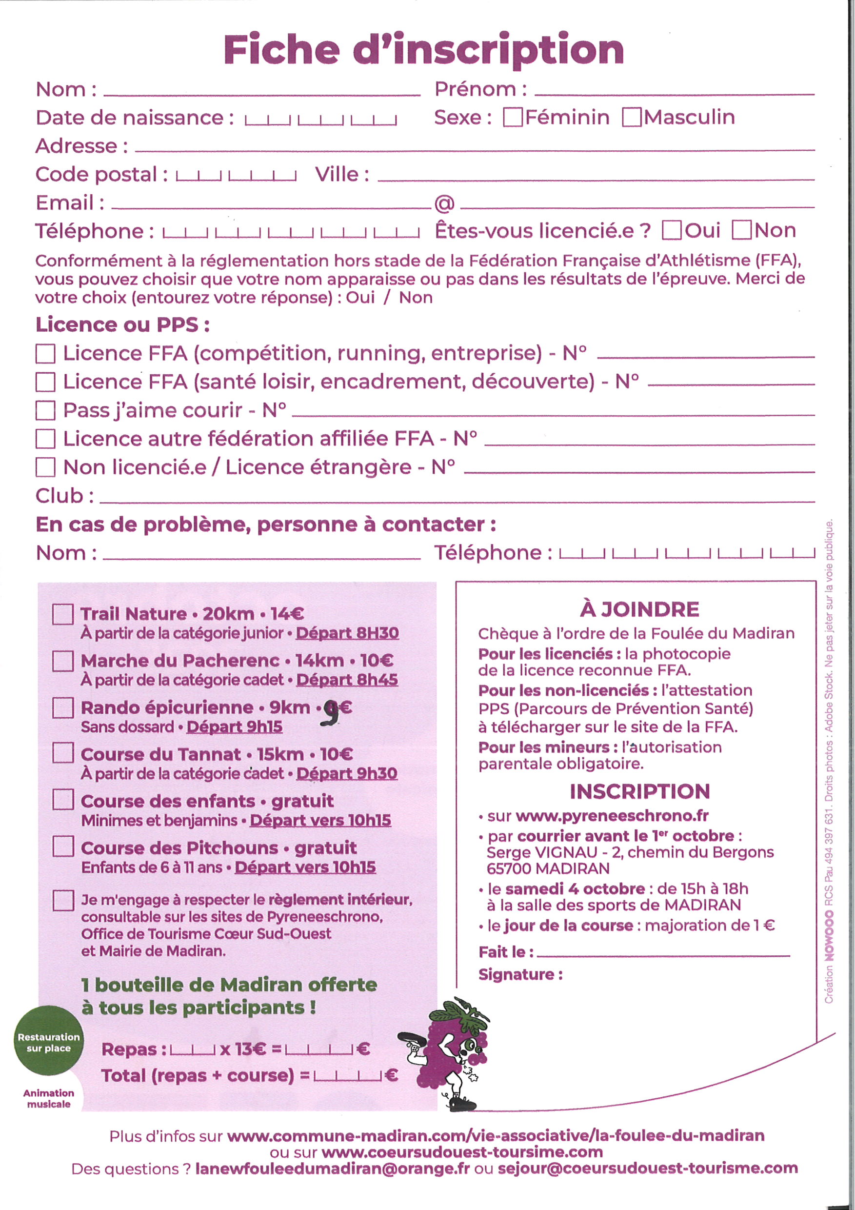 fiche inscription pour la foulée de Madiran